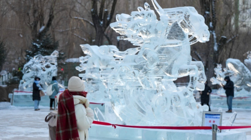 冰雕艺术添彩“冰城”冬日冰雪画卷