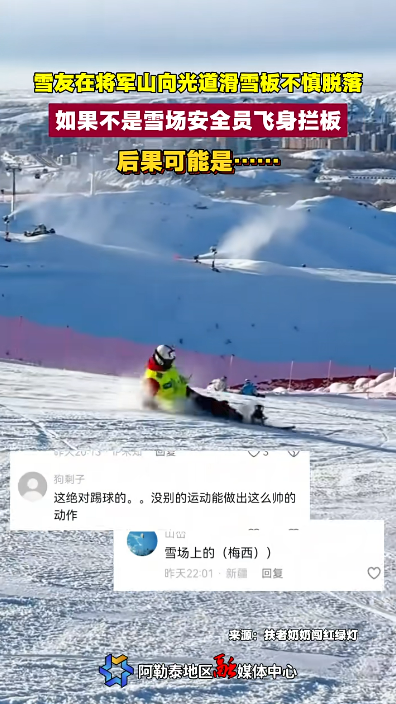 雪友在将军山向光道滑雪板不慎脱落 如果不是雪场安全员飞身拦板 后果可能是……