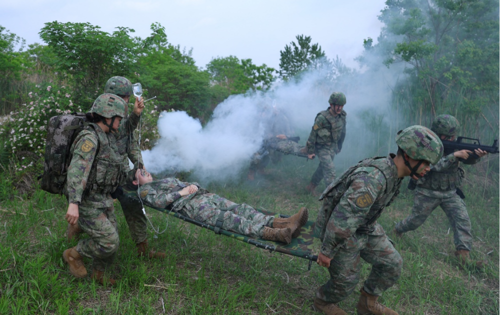 联勤保障部队第901医院组织文职队伍深入山林地域,开展实战化岗位练兵,紧盯护理人员“走、打、搜、救、藏”等战场急需管用的卫勤保障技能,锤炼快速搜救、“伤员”转运、火线救治能力。(郝东红、阮敏婕)