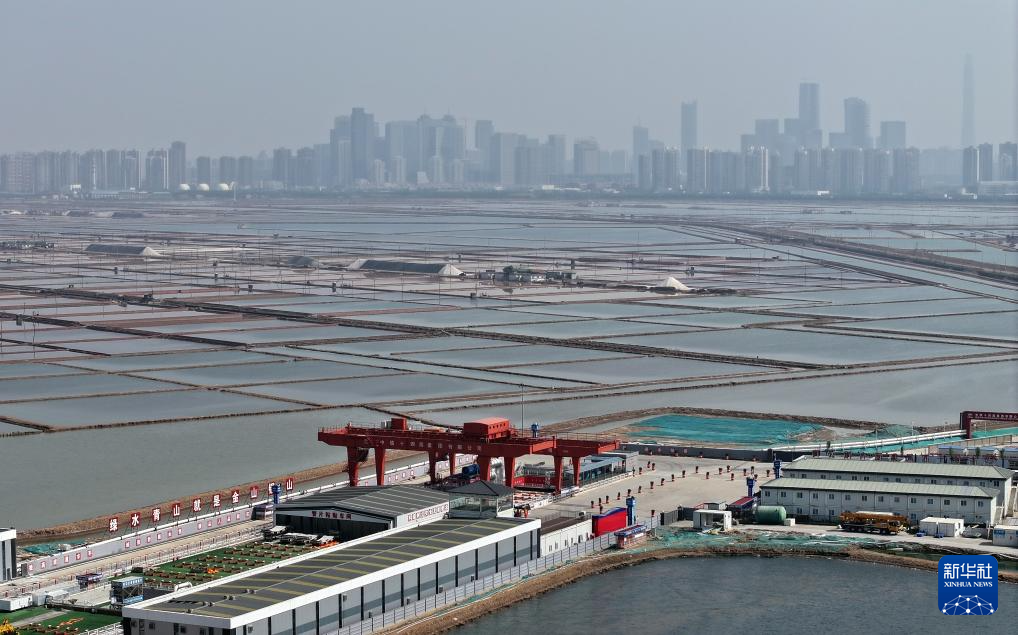 5月19日拍摄的津潍高铁津沽海河隧道盾构工区一角(无人机照片)。新华社记者 李然 摄