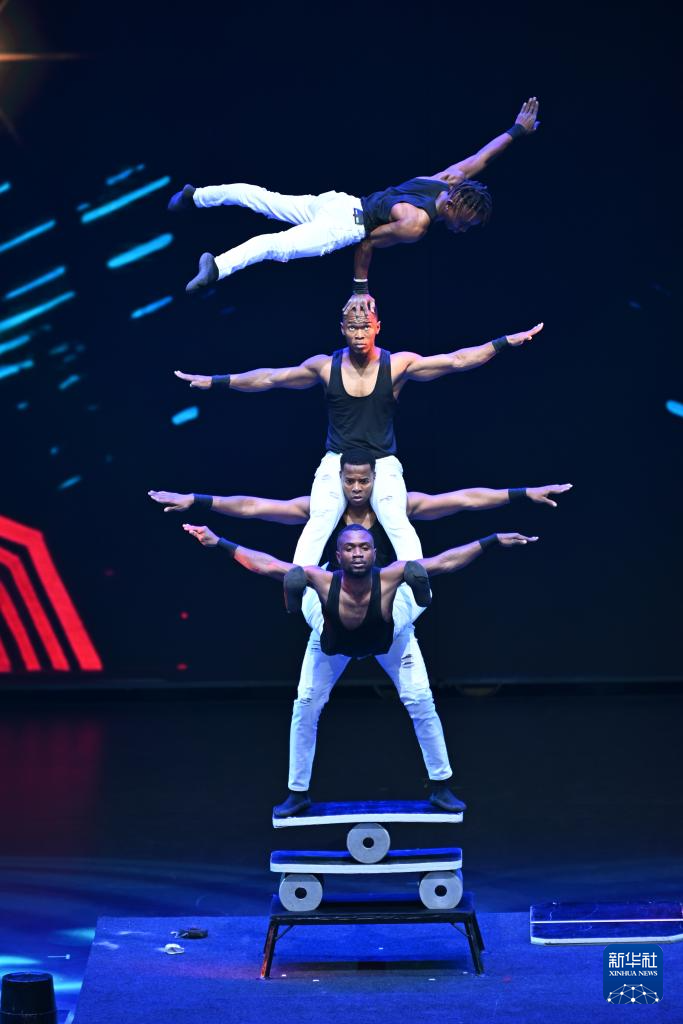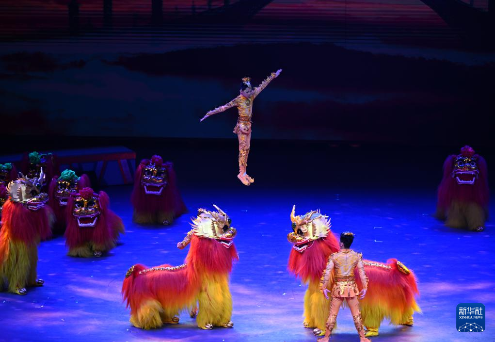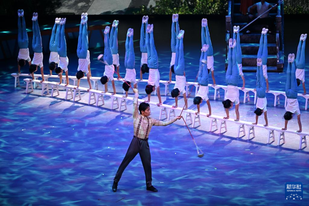 9月28日,演员在第二十届中国吴桥国际杂技艺术节开幕式上表演。新华社记者 牟宇 摄