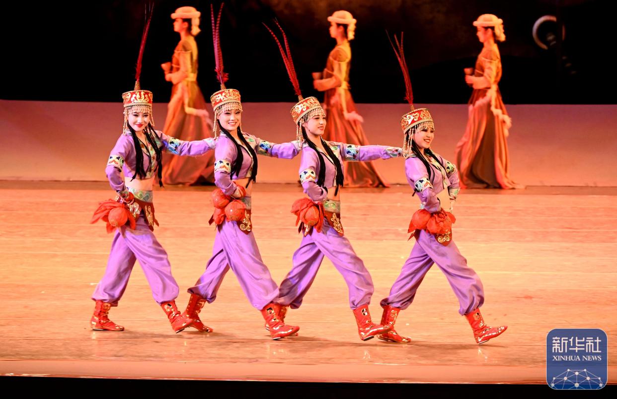 ↑ 10月3日晚,在甘肃省敦煌大剧院,演员在经典舞剧《大梦敦煌》中表演。新华社发(张晓亮摄)
