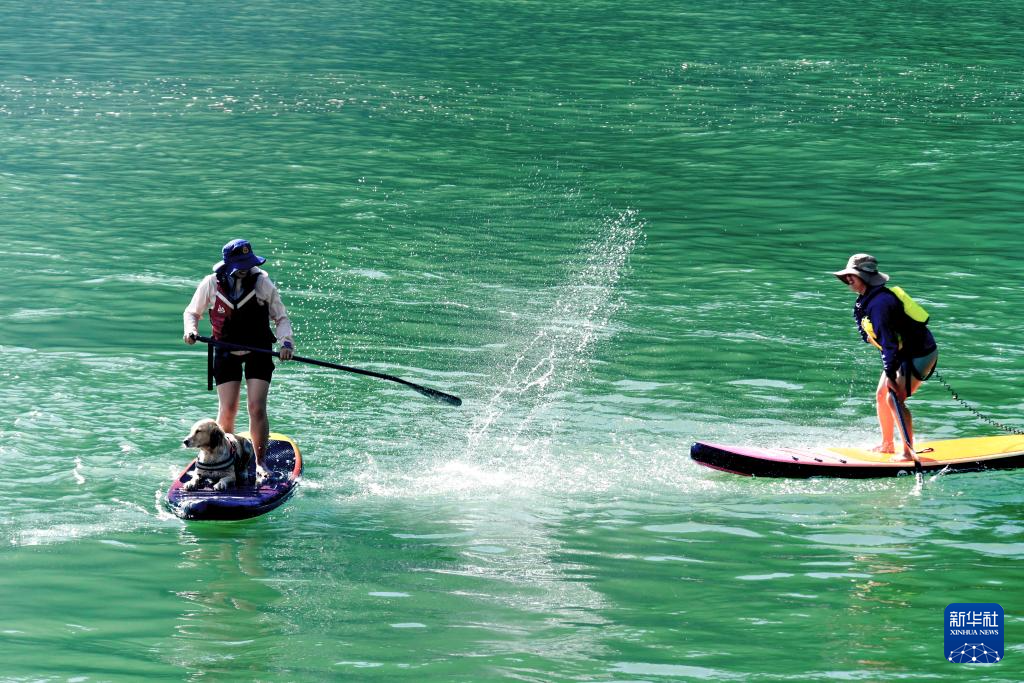 10月4日,游客在云南大理南涧彝族自治县公郎镇猛龙渡体验桨板。新华社发(适志宏摄)