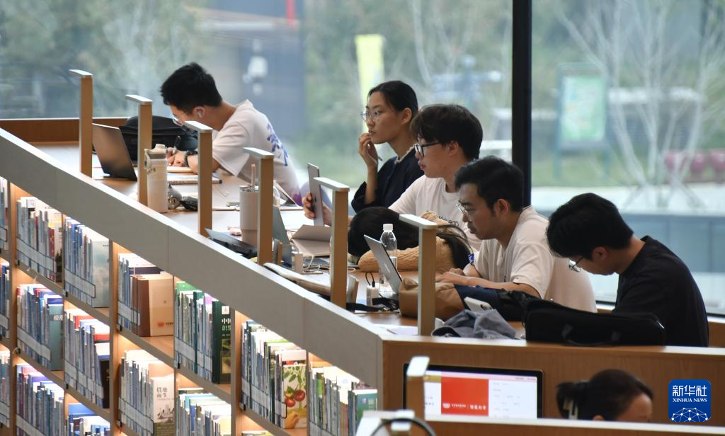 国庆假期,市民来到北京城市图书馆读书学习,在书香和静谧中度过假期。