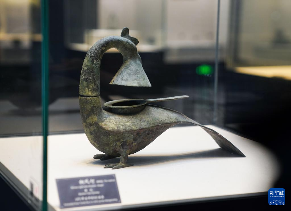 这是10月21日在广西合浦汉代文化博物馆拍摄的铜凤灯。新华社记者 周佳谊 摄