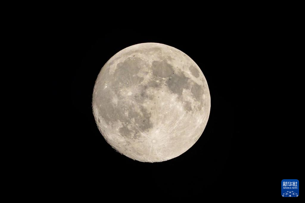 11月4日,在北京市昌平区东小口城市休闲公园拍摄的中国空间站飞过圆月的过程(堆栈合成照片)。新华社记者 邢广利 摄