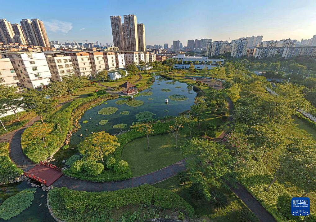 这是广西南宁市沙江河湿地公园初冬景色(11月14日摄,无人机照片)。新华社记者 周华 摄