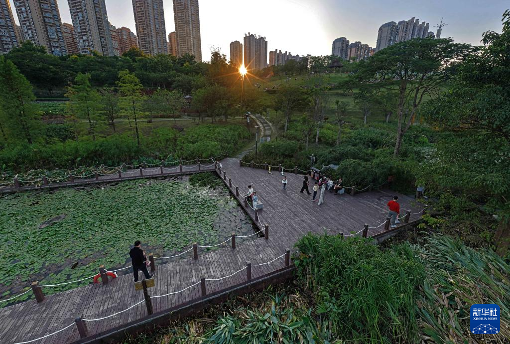 市民在广西南宁市那考河湿地公园游玩(11月14日摄,无人机照片)。新华社记者 周华 摄