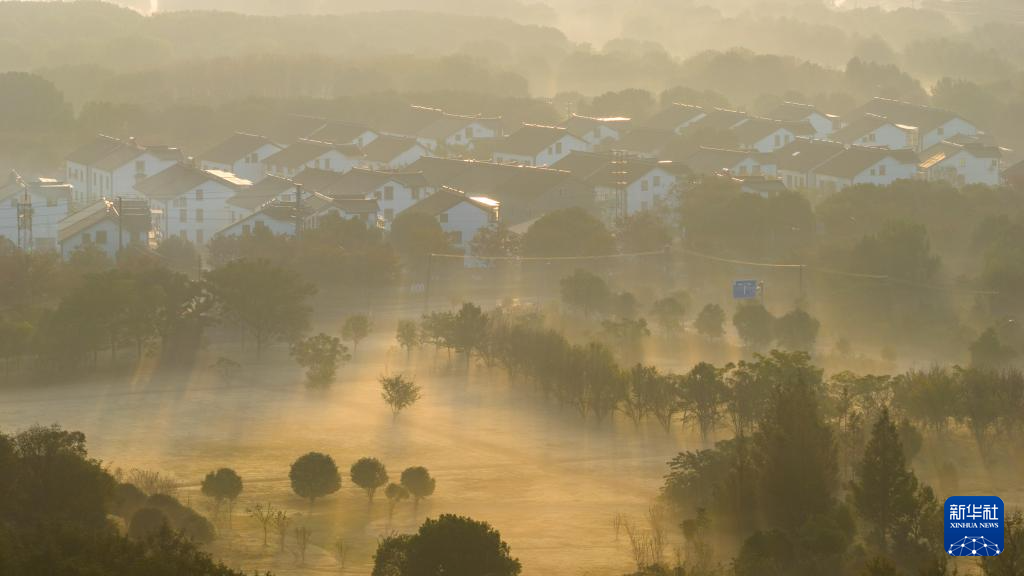 11月15日拍摄的江苏省昆山市周庄镇祁浜村晨景(无人机照片)。新华社发(王须中摄)