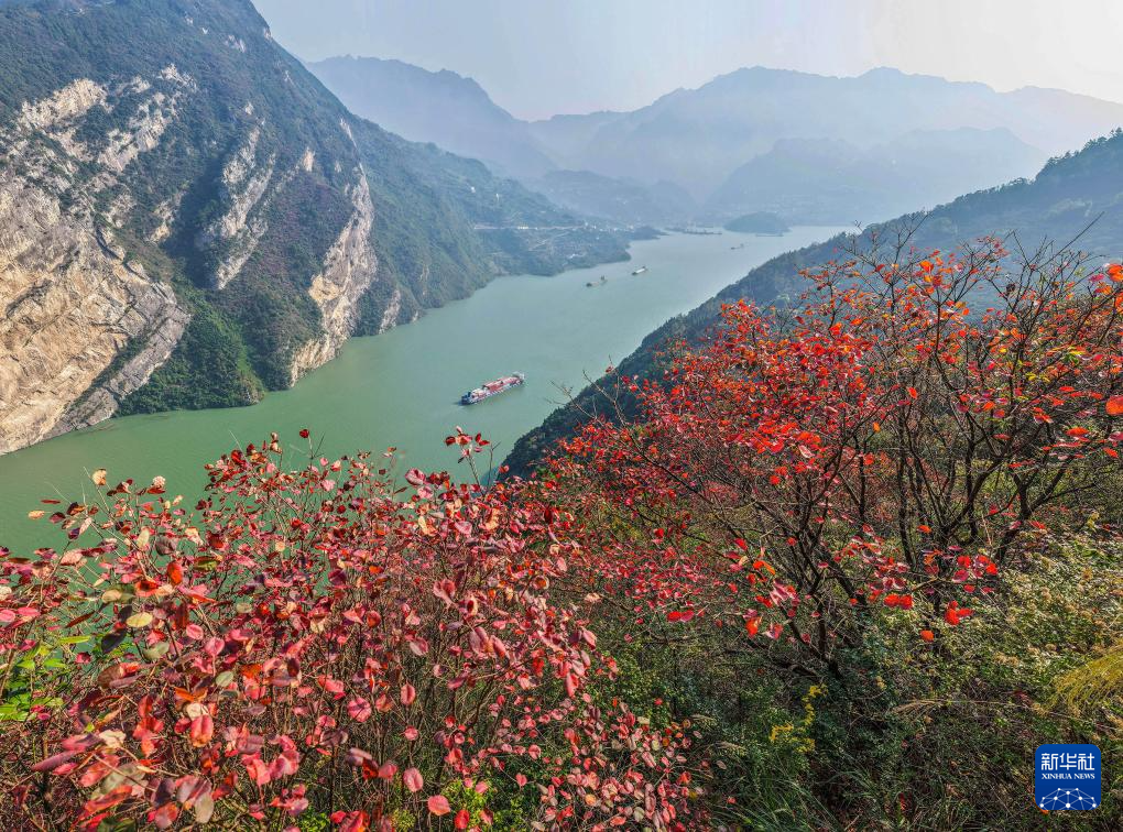 11月16日,船舶行驶在湖北省宜昌市秭归县西陵峡水域(无人机照片)。新华社发(雷勇摄)