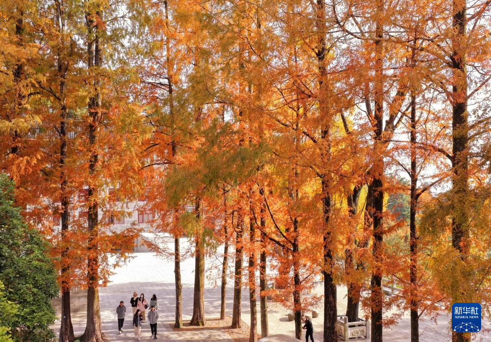 11月19日,游客在湖南省衡阳市南岳衡山风景区赏景游玩(无人机照片)。新华社发(曹正平摄)