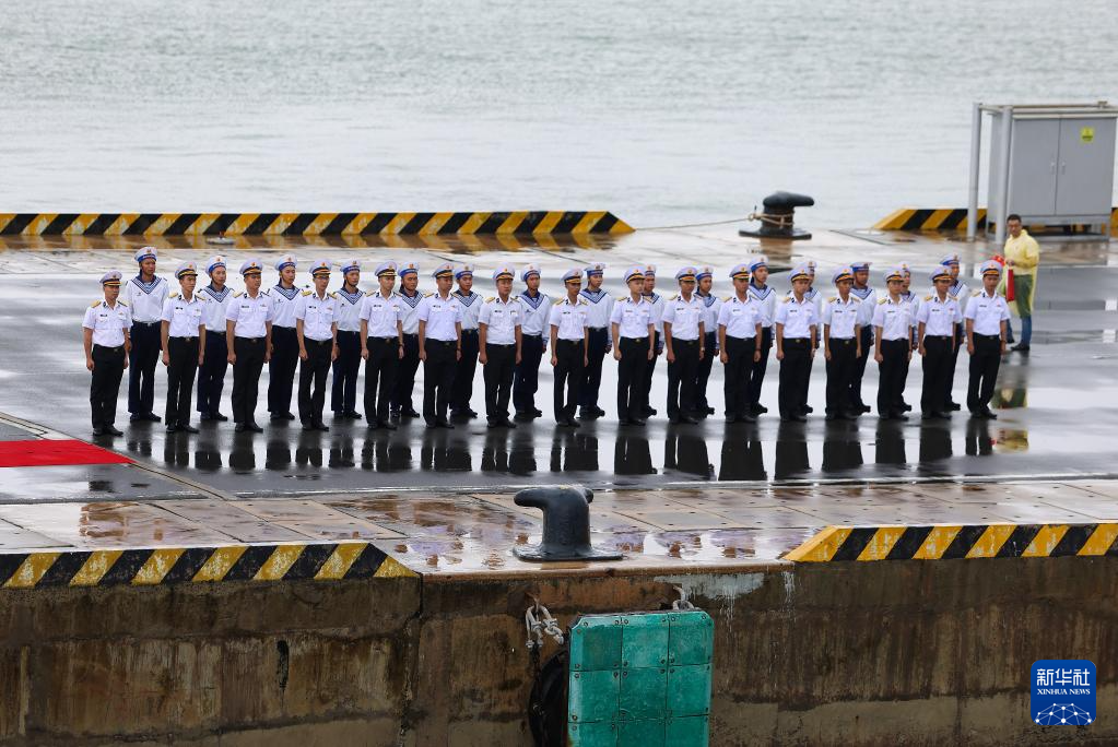 当地时间凌晨,中国海军长白山舰、郑和舰和“向前进1号”船抵达预定海域,与越南海军“丁先皇”号护卫舰汇合,组成编队驶向金兰港,10时许靠泊金兰港码头。中国驻越南大使馆工作人员、当地华侨华人代表、越南海军官兵等冒雨到码头迎接。随舰实习出访的海军工程大学、海军航空大学学员在甲板上分区列队,向欢迎人群致意。