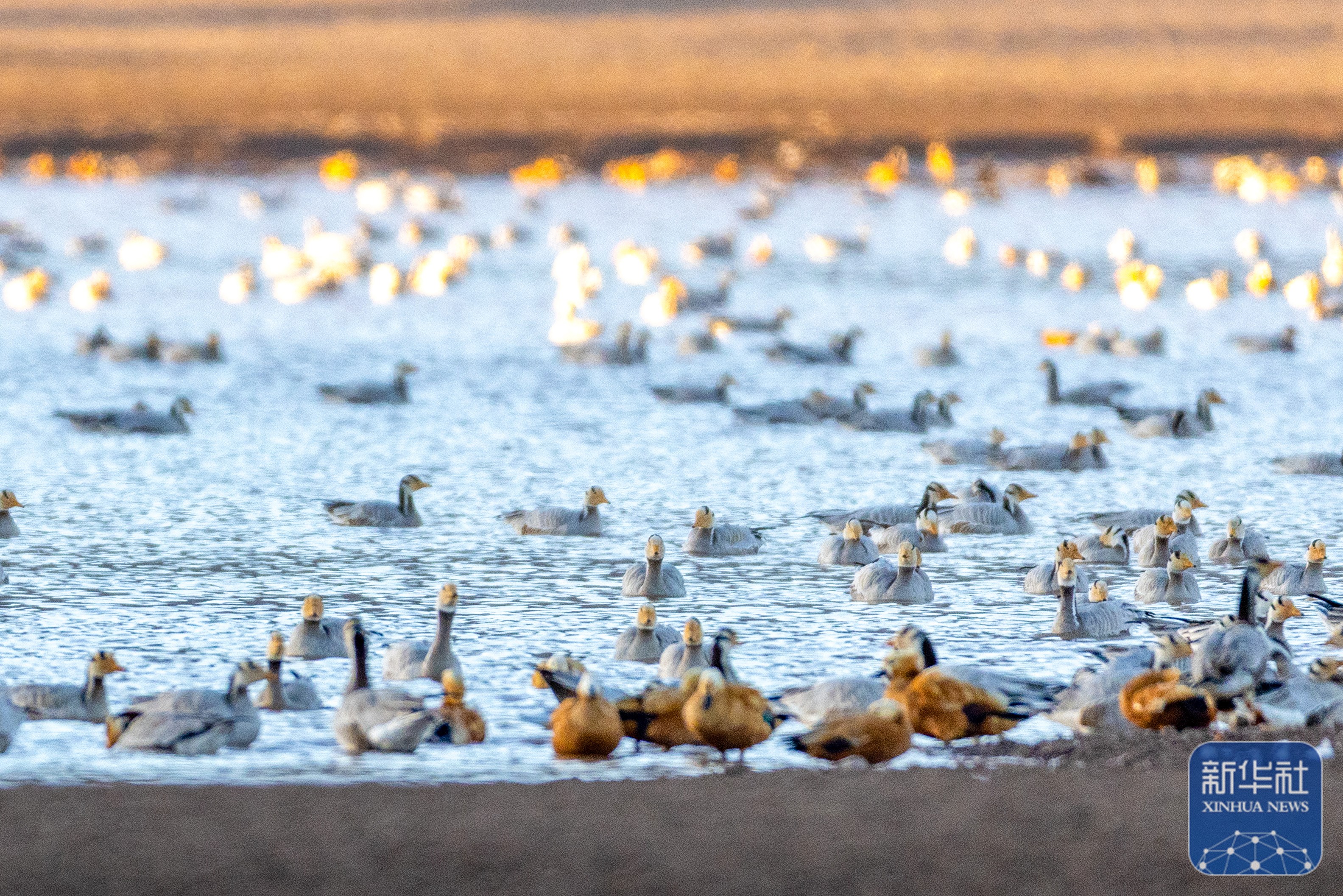 冬日时节,拉萨市林周县迎来大批越冬候鸟,黑颈鹤、斑头雁、赤麻鸭等候鸟在河谷、湖泊等地觅食、休憩。