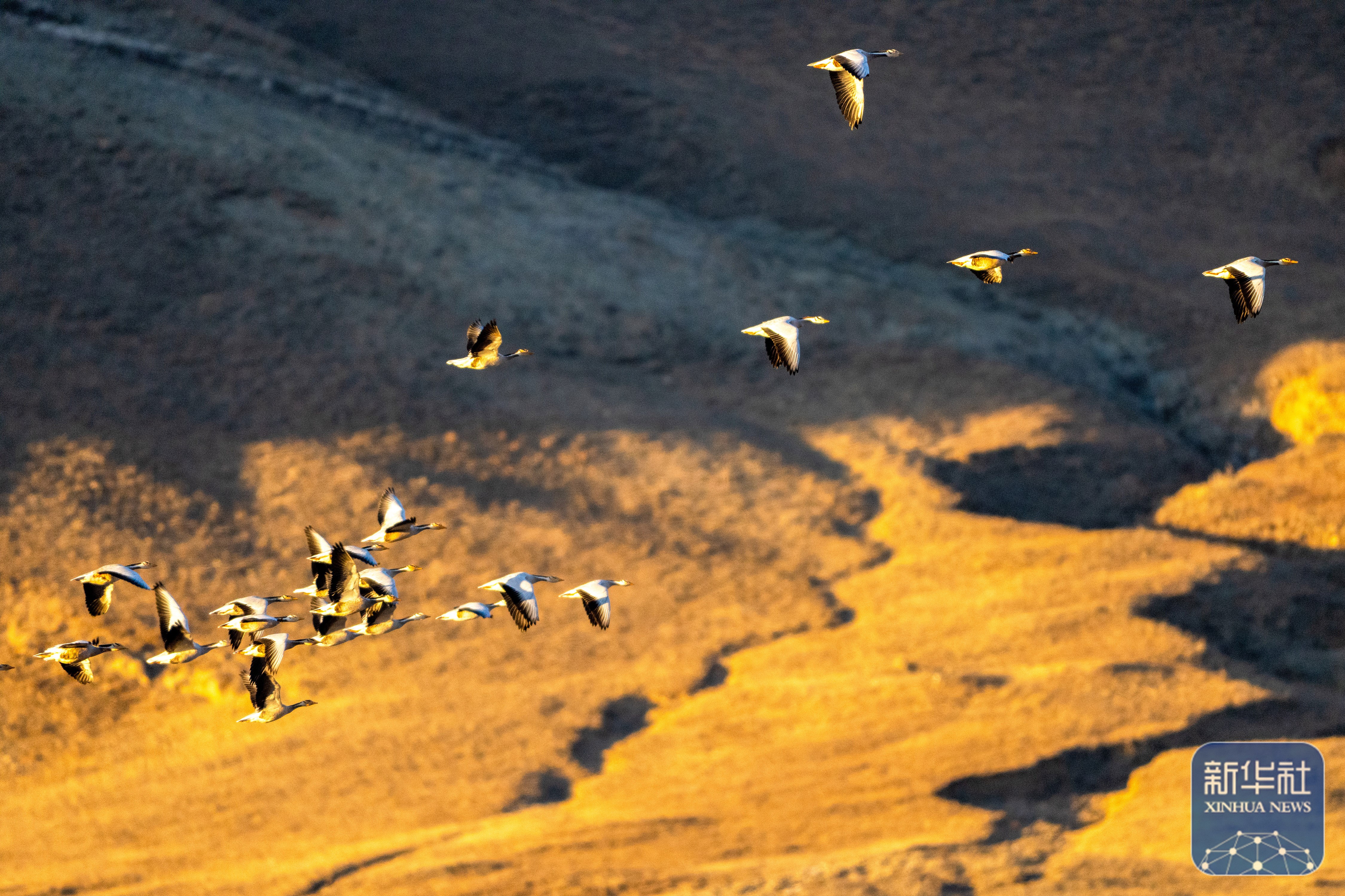 ↑ 这是11月23日在西藏拉萨市林周县拍摄的越冬候鸟。新华社记者 姜帆 摄