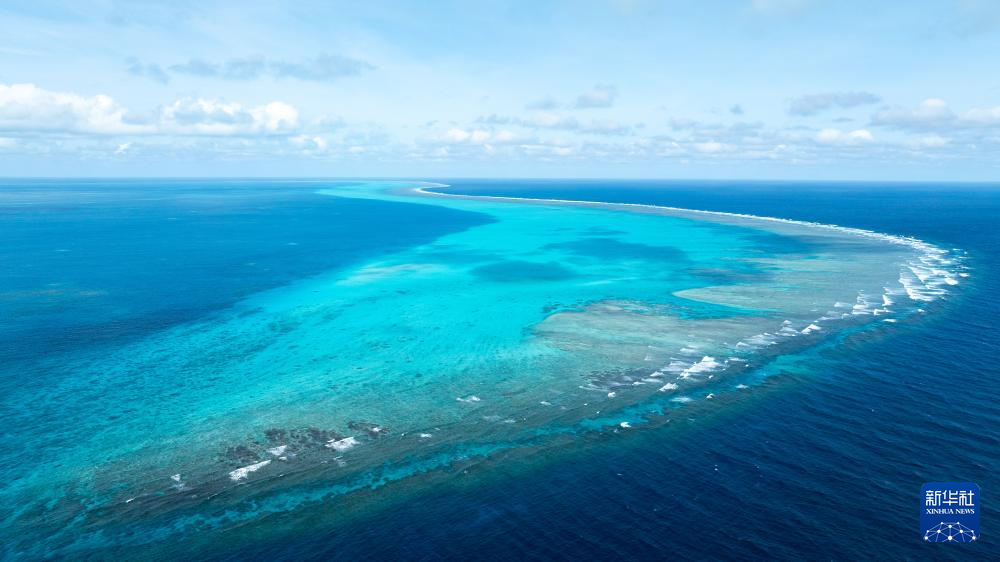 黄岩岛位于我国中沙群岛,湛蓝的海水和岛上的礁盘相映成趣,如同一颗镶嵌在南海之中的明珠。
