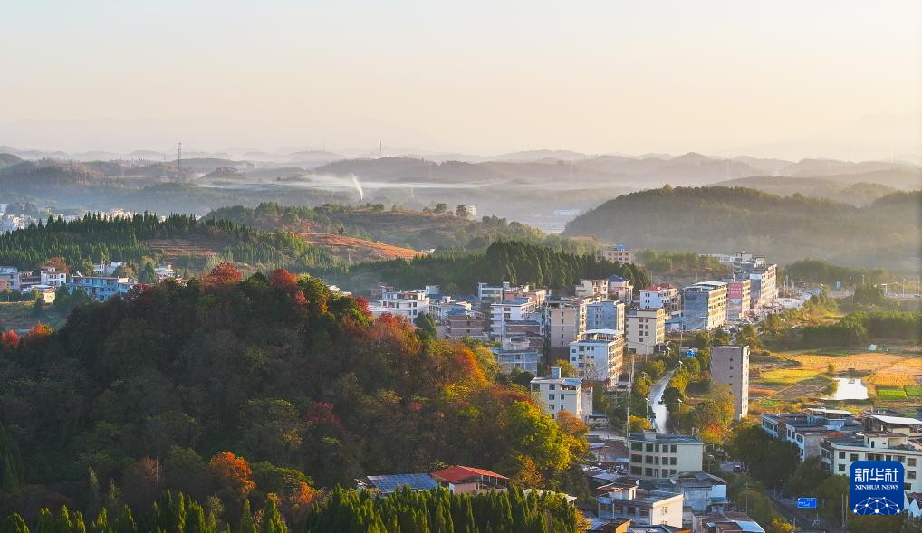 11月28日拍摄的湖南省永州市新田县中山街道晨景(无人机照片)。新华社发(刘贵雄摄)