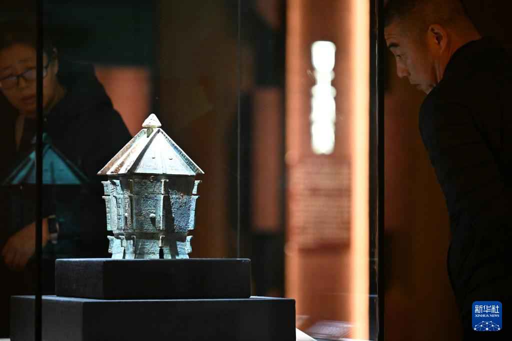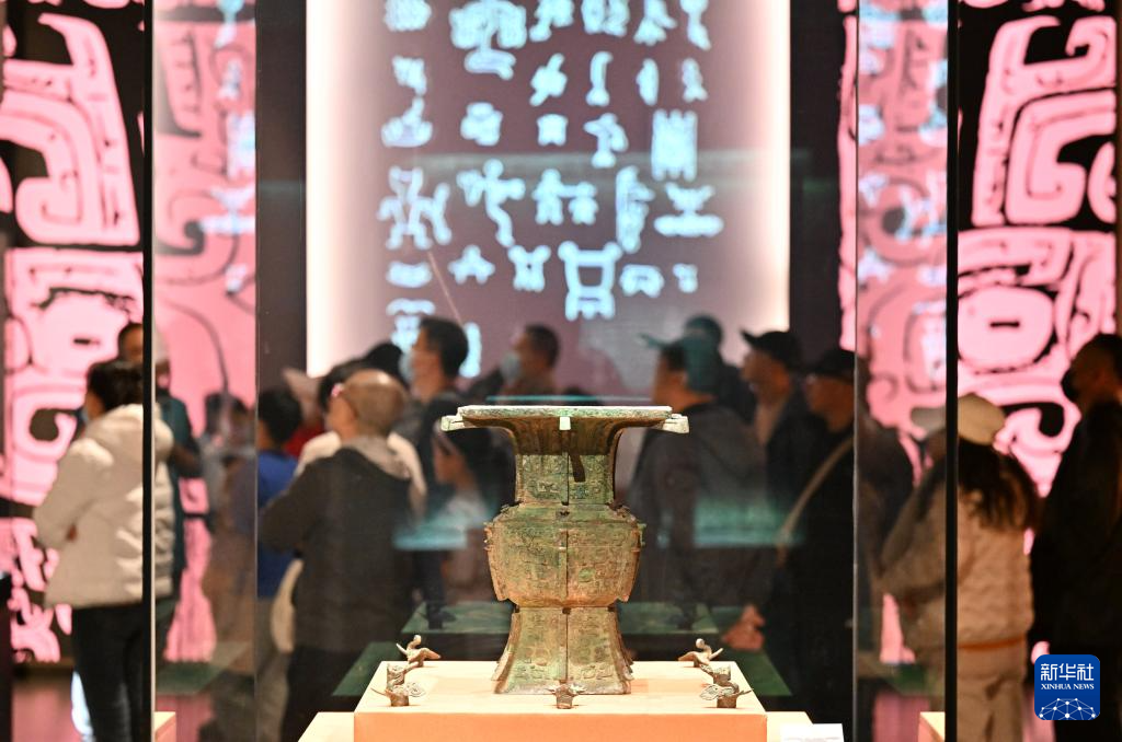 11月29日在展览上拍摄的展出文物亚址铜方尊。新华社记者 李然 摄