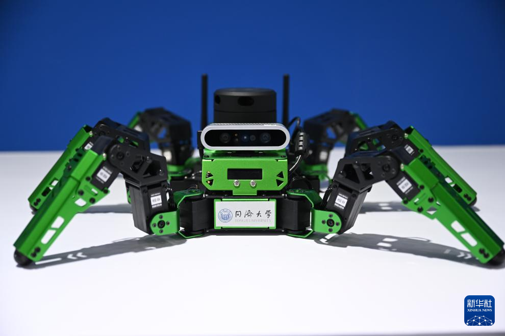 这是12月1日在“侨智汇”成果发布区拍摄的“爬行蜘蛛人”机器人。新华社记者 周义 摄