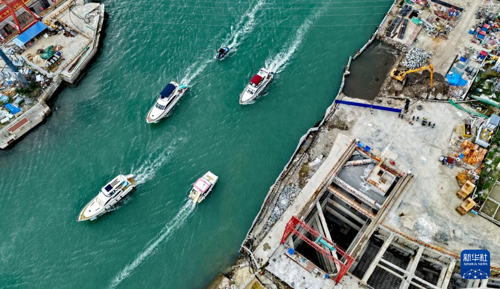 12月5日,游艇从三亚河口通道工程项目上驶过。新华社记者赵颖全摄