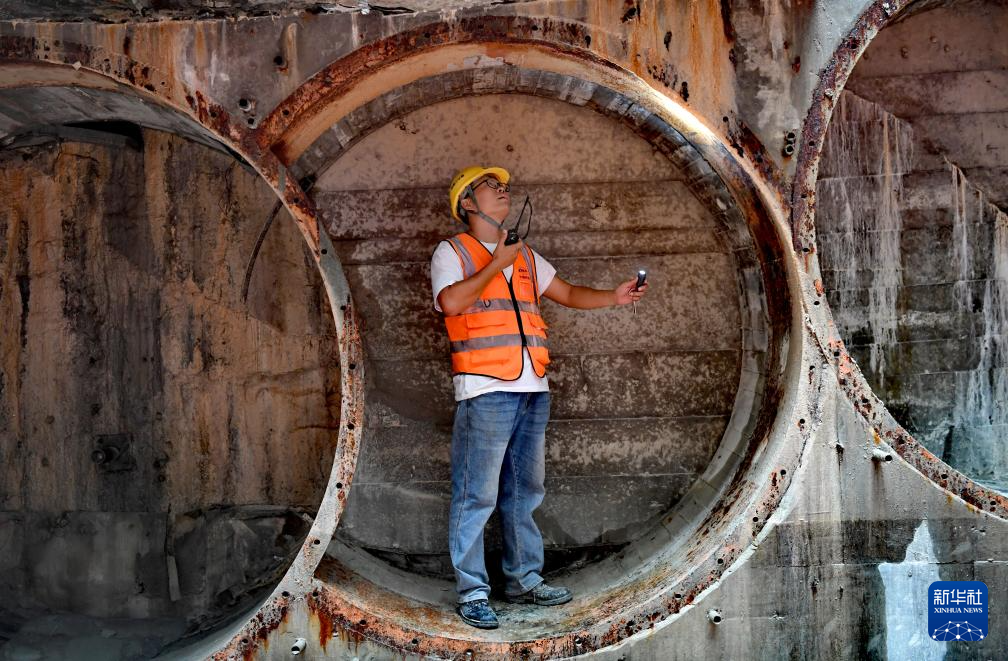 12月5日,工人在三亚河口通道工程项目现场检查贯通管相邻管节状态。新华社记者赵颖全摄