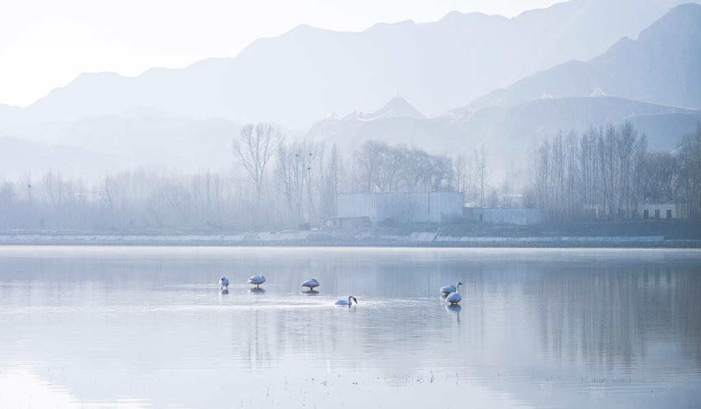 这是12月3日在化隆回族自治县境内的黄河边拍摄的天鹅。新华社记者 齐芷玥 摄
