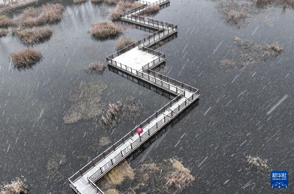 12月12日在山东枣庄滕州市荆河公园拍摄的雪景。新华社发(李志军摄)