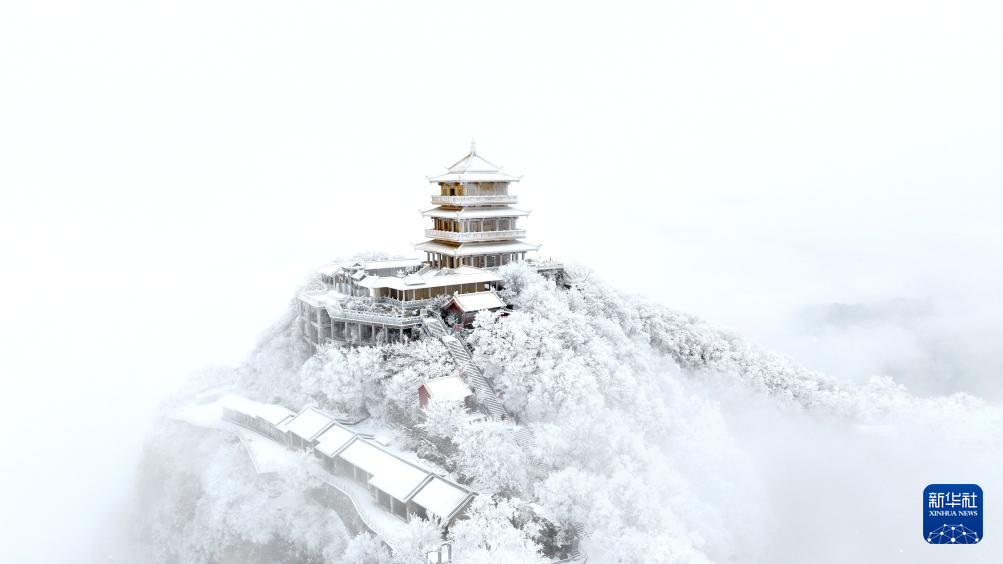 12月12日在河南省济源市王屋山拍摄的雪景(无人机照片)。新华社发(段二平摄)