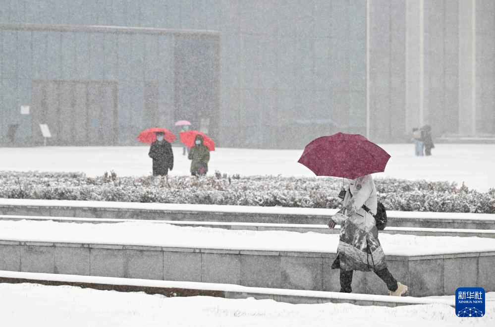 12月12日,在河北省石家庄市桥西区,行人冒雪出行。新华社发(陈其保摄)