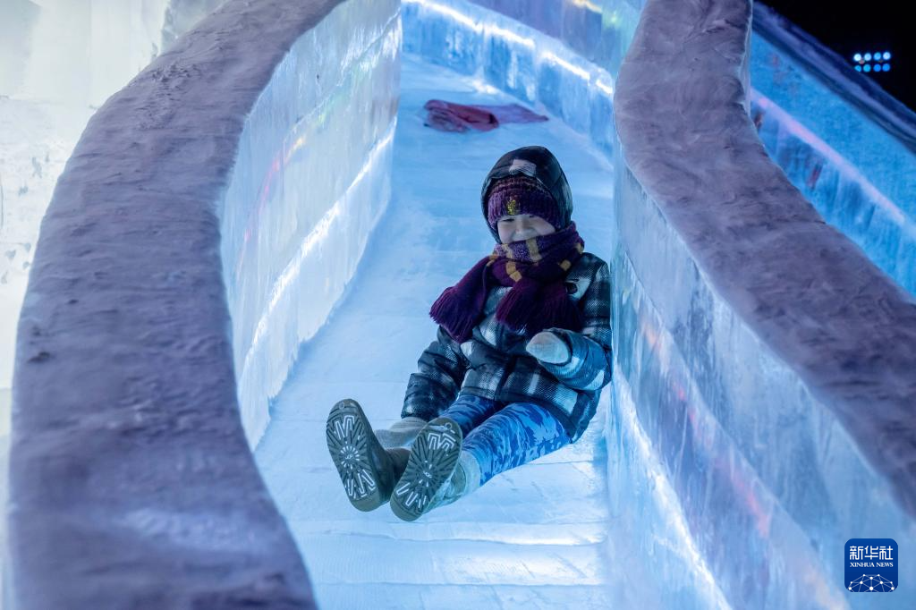 12月20日,一名儿童在“冰雪芳华”主题乐园内玩耍。新华社记者 连振 摄