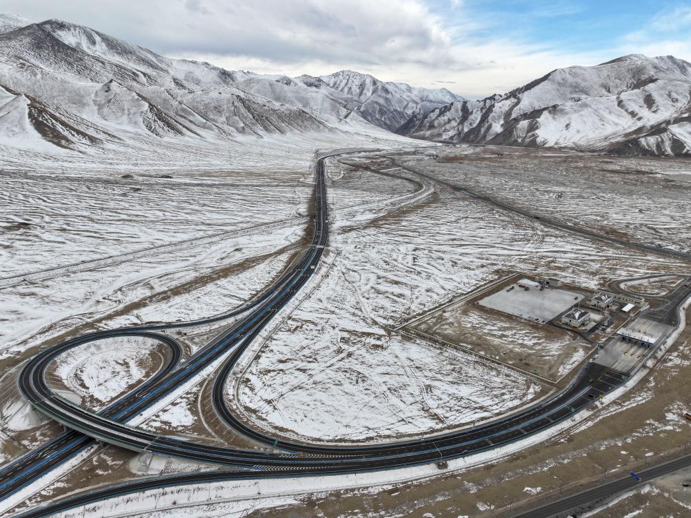 这是在乌鲁木齐县拍摄的乌尉高速公路永丰立交(2025年12月23日摄)。新华社记者 王菲 摄