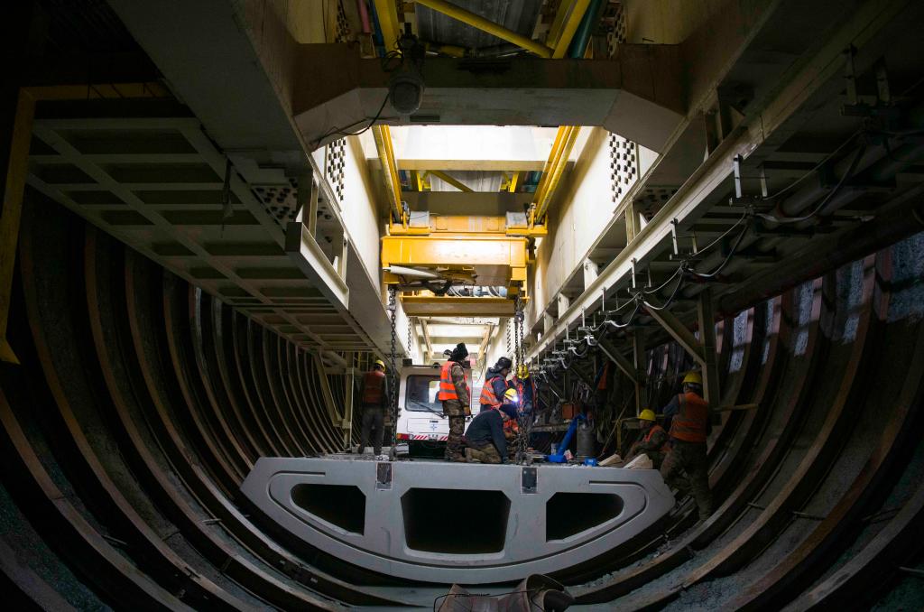 工人在天山胜利隧道中导洞内施工(2021年2月4日摄)。新华社记者 胡虎虎 摄