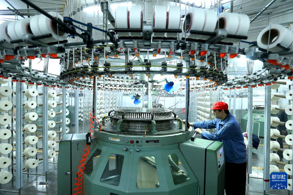 12月31日,山东省青岛市即墨区即发集团的员工在生产服装面料产品。新华社发(梁孝鹏摄)