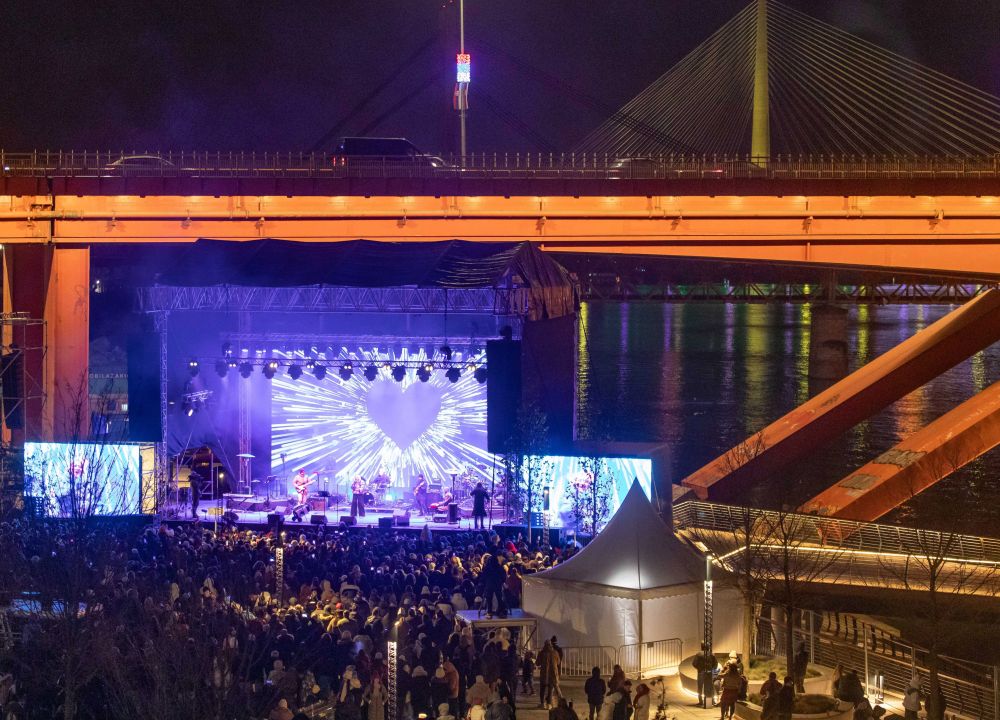 2026年1月1日,人们在塞尔维亚首都贝尔格莱德的萨瓦河畔观看跨年演出。