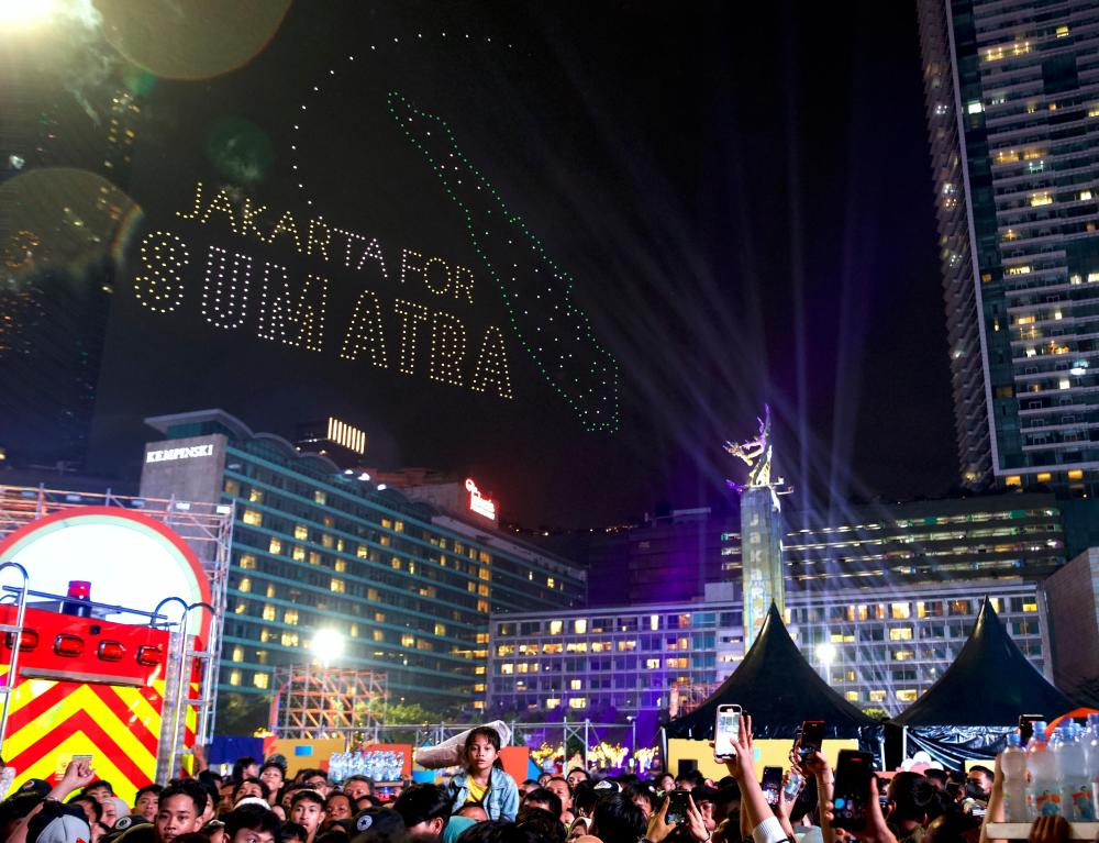 2026年1月1日凌晨,人们在印度尼西亚雅加达迎接新年。