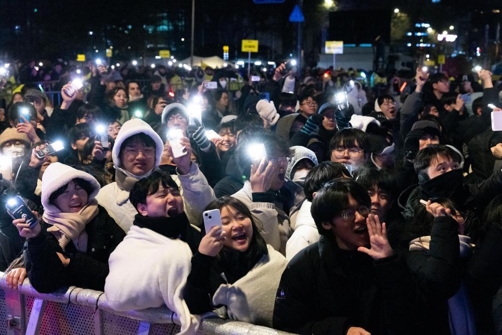 2026年1月1日凌晨,韩国民众在首尔街头庆祝新年。