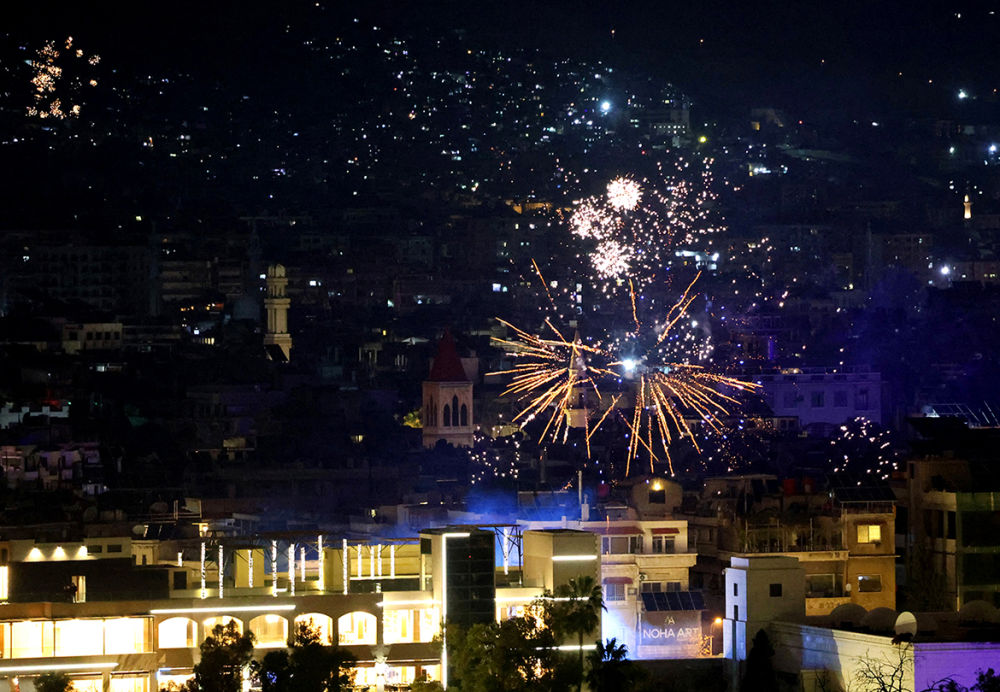 2026年1月1日,叙利亚首都大马士革燃放烟花迎接新年到来。
