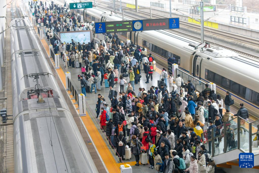 1月3日,旅客在南京火车站乘车出行。新华社发(苏阳摄)