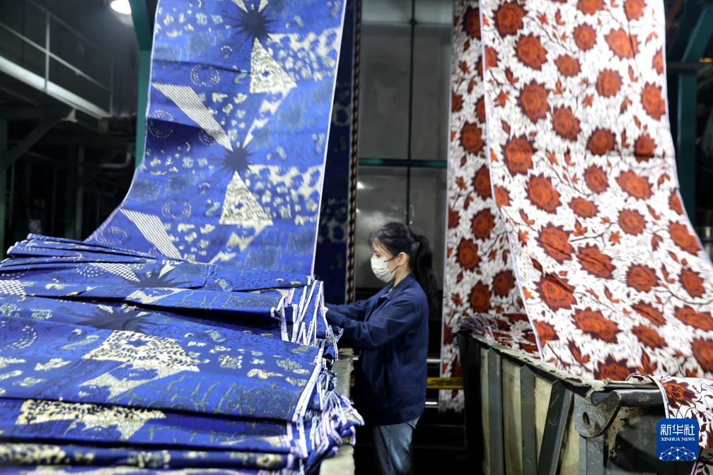 1月14日,在山东省滨州市的一家纺织生产企业车间,工人加紧赶制出口非洲的蜡布订单。新华社发(初宝瑞 摄)
