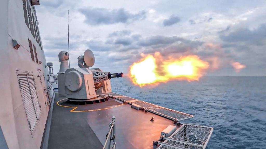 面对任务海域复杂环境,指挥员迅速研判态势,命令主炮战位做好射击准备,各舰运用雷达、光电系统跟踪锁定目标。随着一枚枚炮弹呼啸而出,目标被成功“摧毁”。