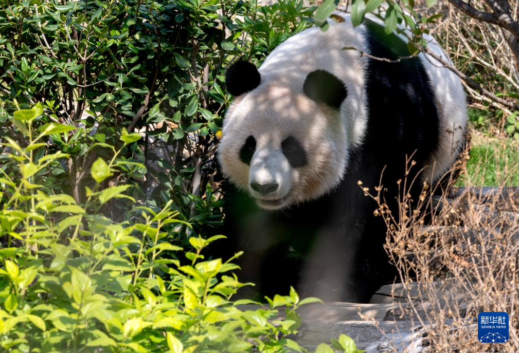 1月17日,大熊猫“荣耀”在户外玩耍。新华社记者 魏培全 摄