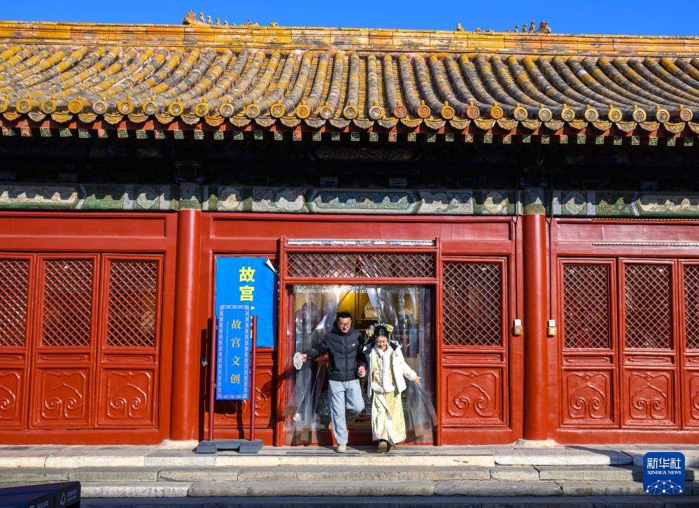 1月24日,游客从故宫文创空间内走出。
