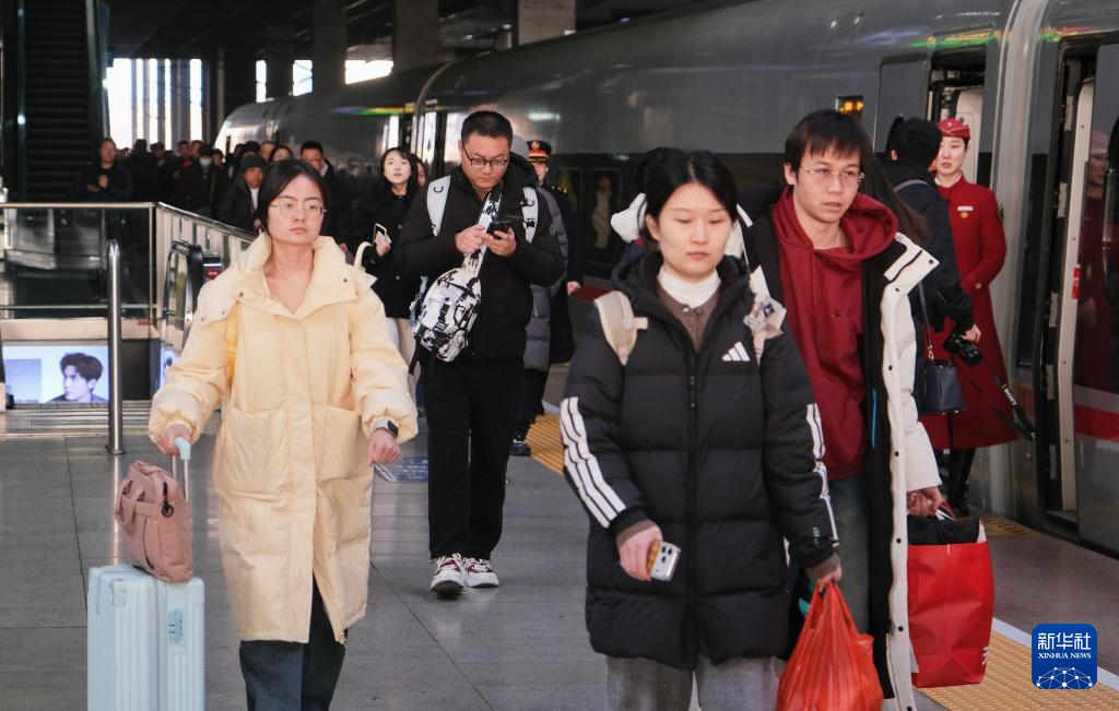 1月26日,旅客在天津西站准备上车。新华社记者 李然 摄