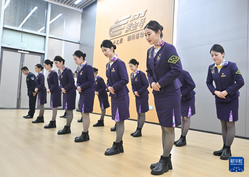 1月28日,中国铁路上海局集团有限公司南京客运段高铁二车队乘务人员进行服务礼仪培训。新华社记者 季春鹏 摄