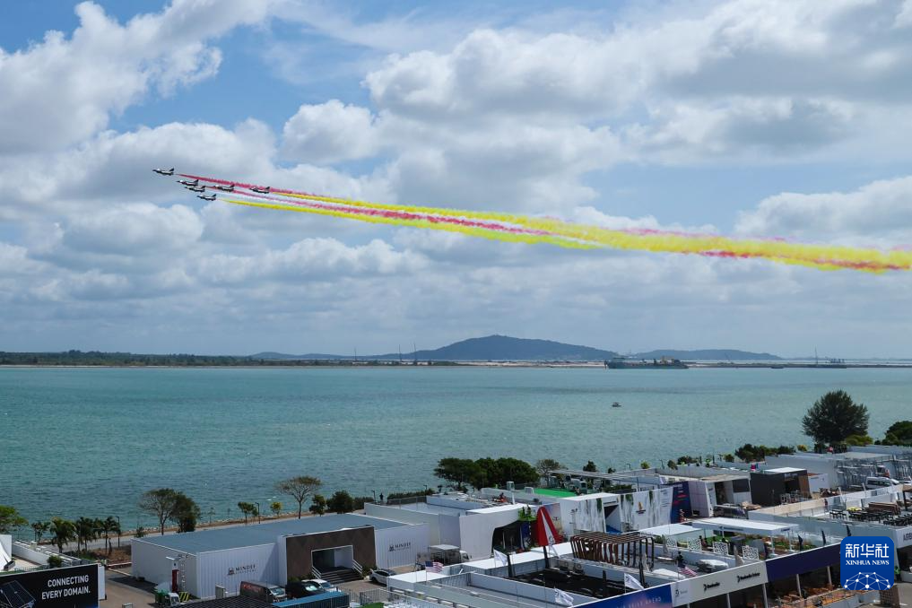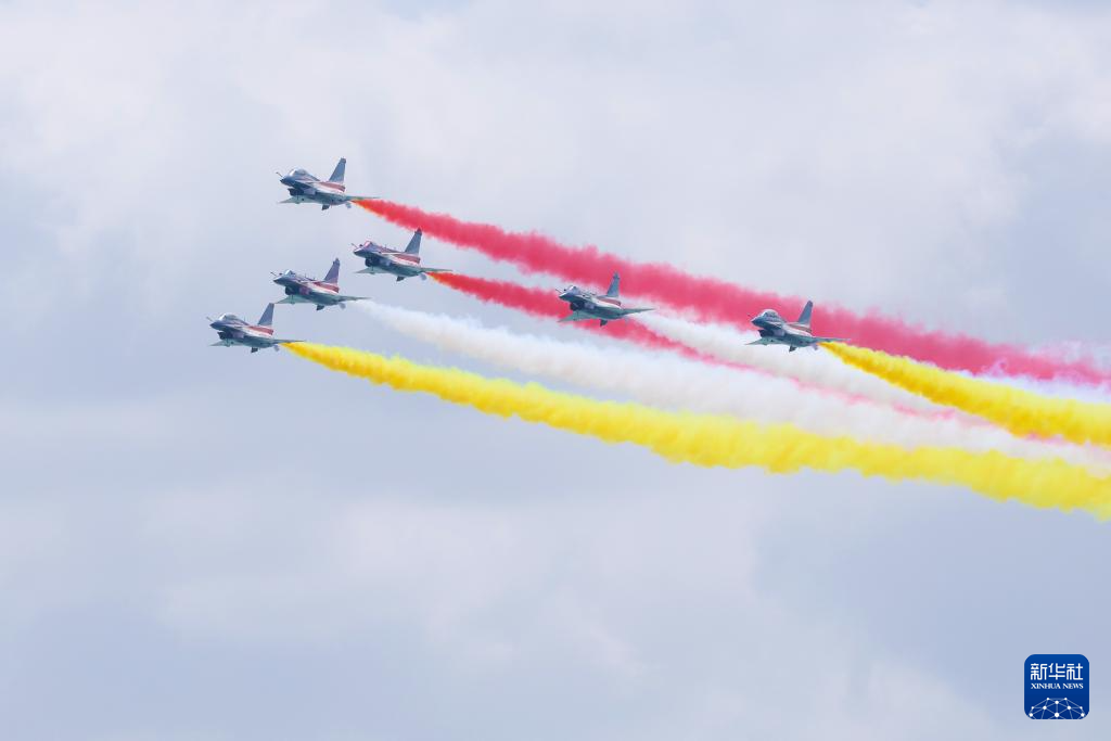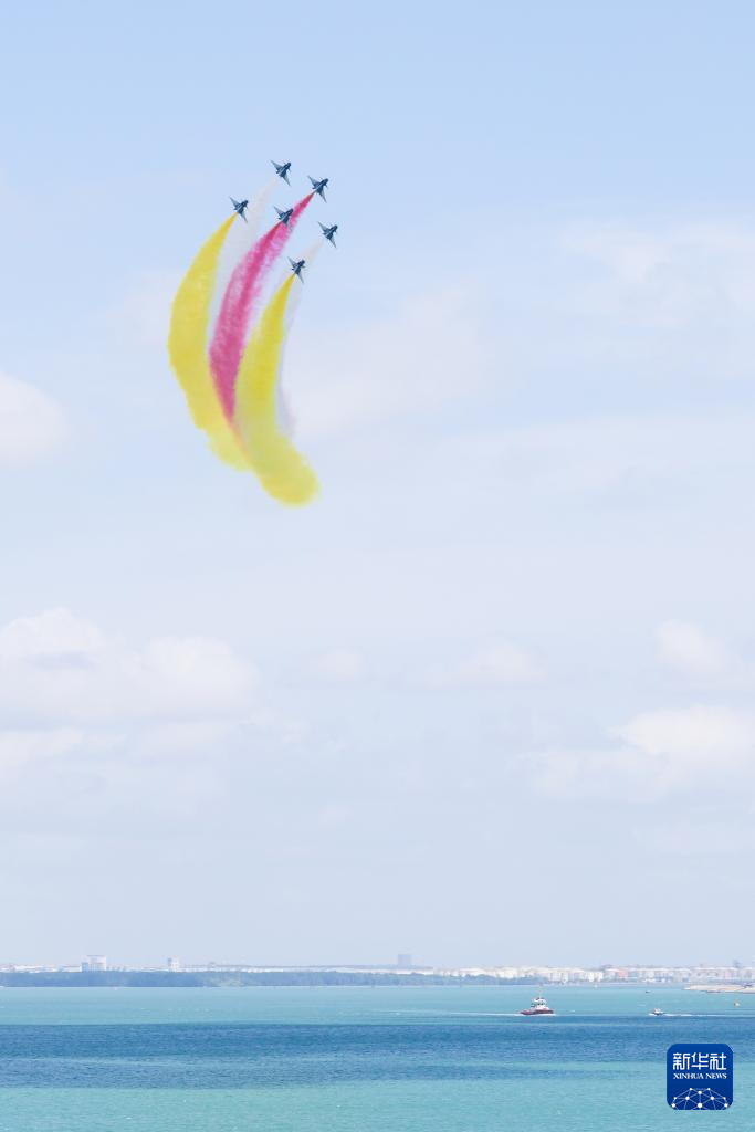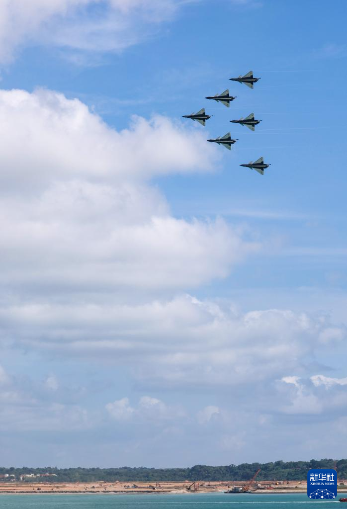 1月30日上午,中国空军八一飞行表演队在新加坡樟宜机场海面上空展开空中特技动作飞行。新华社发(朱姜海摄)
