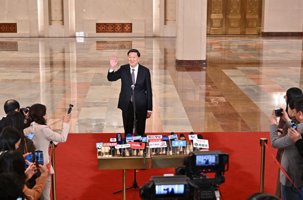 3月9日,第十四届全国人民代表大会第四次会议第二场“部长通道”集中采访活动在北京人民大会堂举行。这是农业农村部部长韩俊接受媒体采访。新华社记者 李鑫 摄