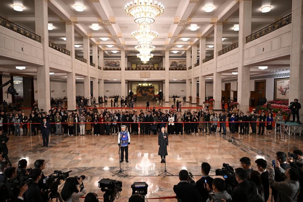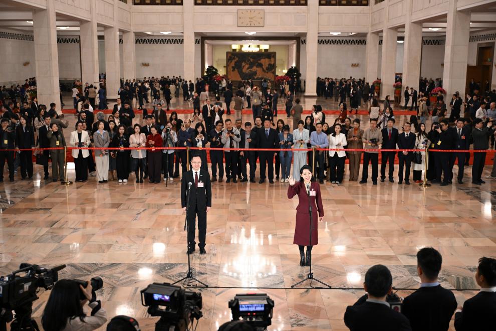 3月12日,第十四届全国人民代表大会第四次会议第三场“代表通道”集中采访活动在北京人民大会堂举行。新华社记者 蔡湘鑫 摄