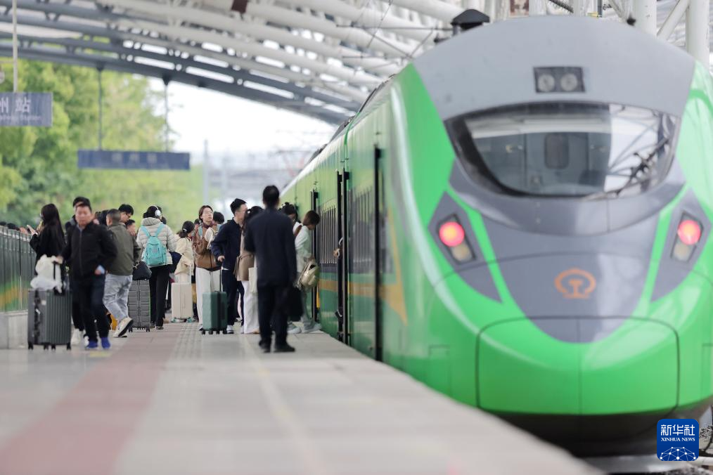 4月29日,旅客在江苏常州火车站准备登车出行。新华社发(陈暐摄)