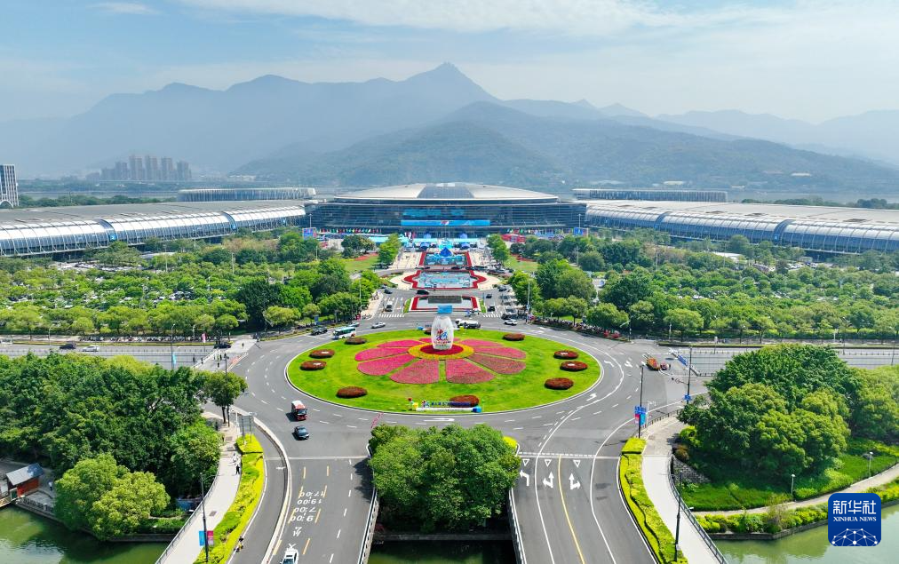 这是4月29日拍摄的峰会举办地福州海峡国际会展中心外景。新华社记者 林善传 摄