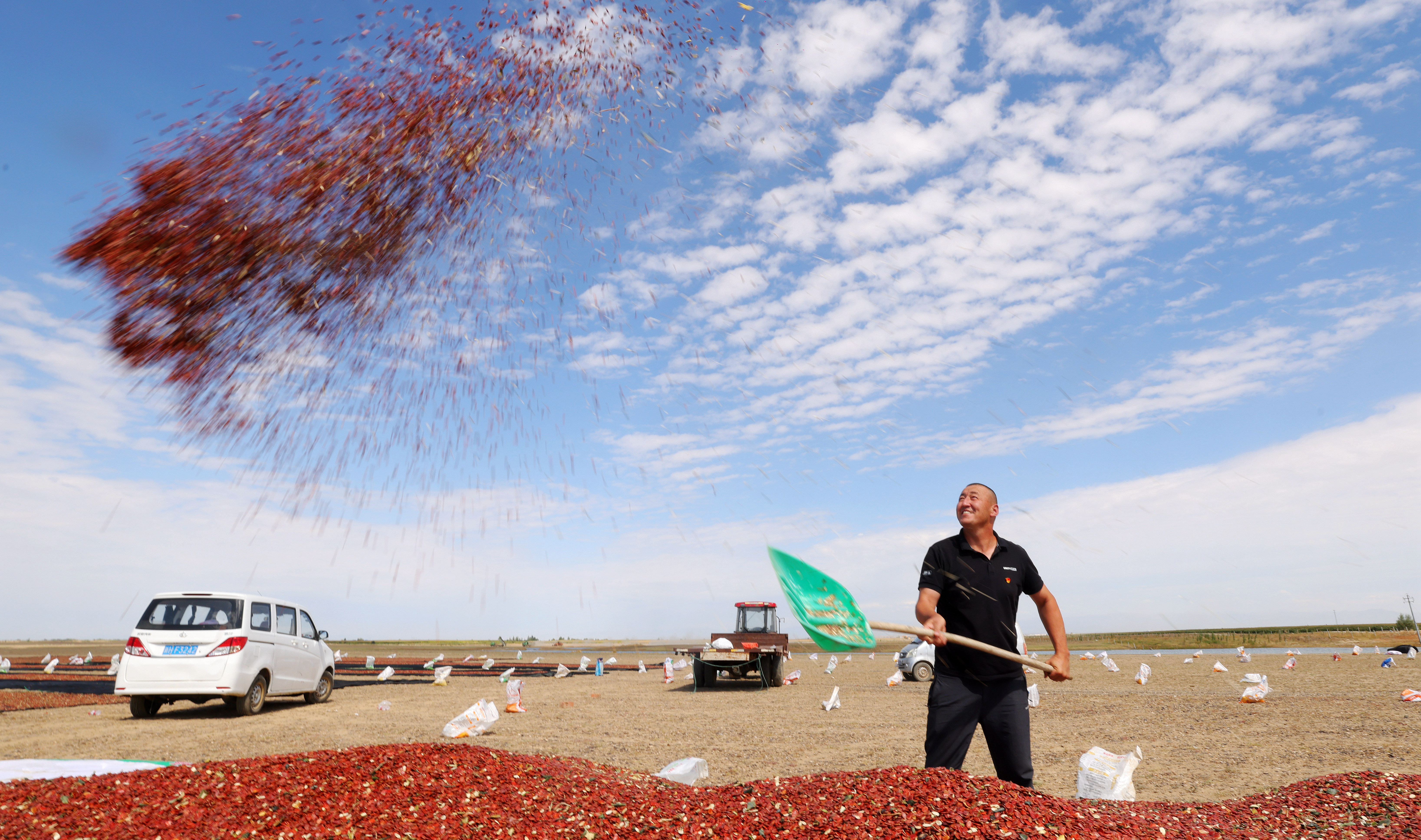 丰收晾晒打瓜子。阿尔达克·拜斯汗 摄