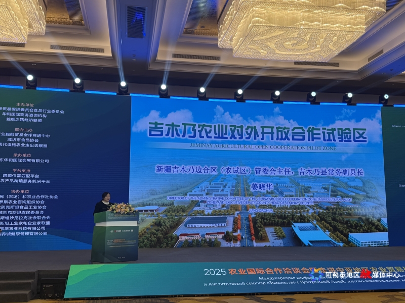 阿勒泰新闻网-阿勒泰地区融媒体中心(记者 古丽娜 通讯员 宋丽萍)“当下的吉木乃,精彩纷呈、‘吉’遇无限,我们诚挚邀请各位企业家携手共享商贸物流通道、共建农业对外交流平台、共拓农业合作空间、打造国际水产品产业基地、打造跨境旅游试验区。”10月27日,在第三届潍坊国际食品农产品博览会配套活动2025农业国际合作洽谈会暨走进中亚地区农业贸易投资分析说明会上,吉木乃边合区(农试区)管委会党工委副书记、主任姜晓华向国内外企业发出热情邀约。